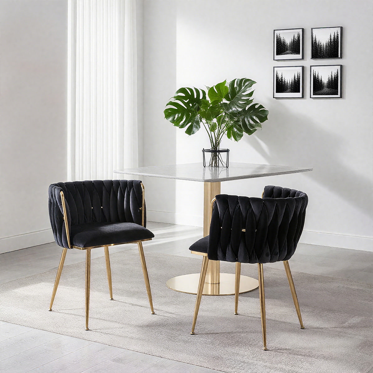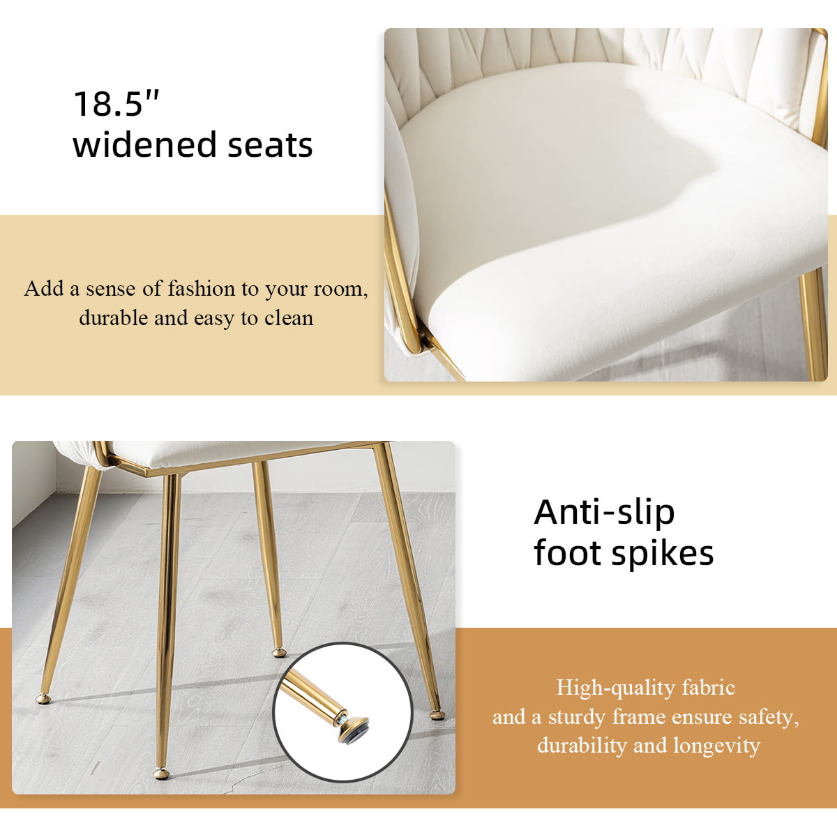 Tá an chathaoir itheacháin upholstered veilbhit Eabhair seo le backrest fite ina cathaoir accent nua-aimseartha ildánach, stól vanity, agus cathaoir taobh lár na haoise. Le fabraic veilbhit só, cosa miotail órga, tacaíocht chúl eirgeanamaíochta, agus cúisíní cúr ard-dlúis, tá sé deartha le haghaidh chompord agus stíl araon. Ideal le haghaidh seomraí bia, seomraí suí, seomraí codlata, seomraí vanity, oifigí, caiféanna, agus óstáin, comhlíonann sé riachtanais úsáideoirí tí agus ceannaitheoirí tráchtála araon.