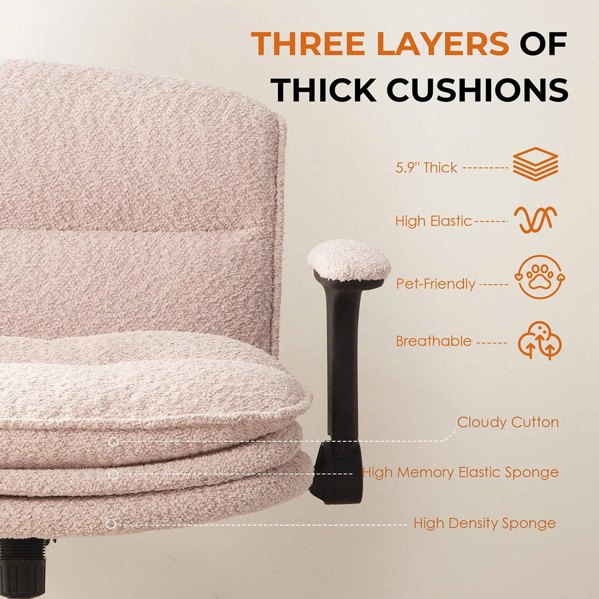 ① Cathaoirleach Oifige Criss Cross le Lámha Smeach & Cúltaca 3 Chiseal - Suíochán Leathan Cathaoirleach Deasc Bouclé eirgeanamaíochta le Rothaí