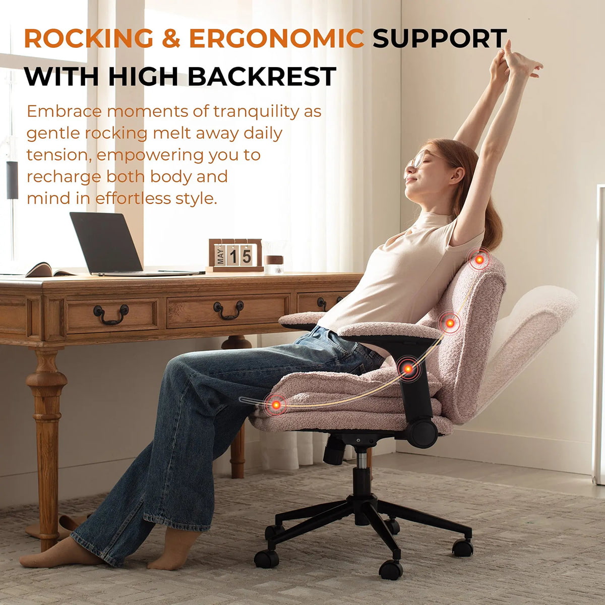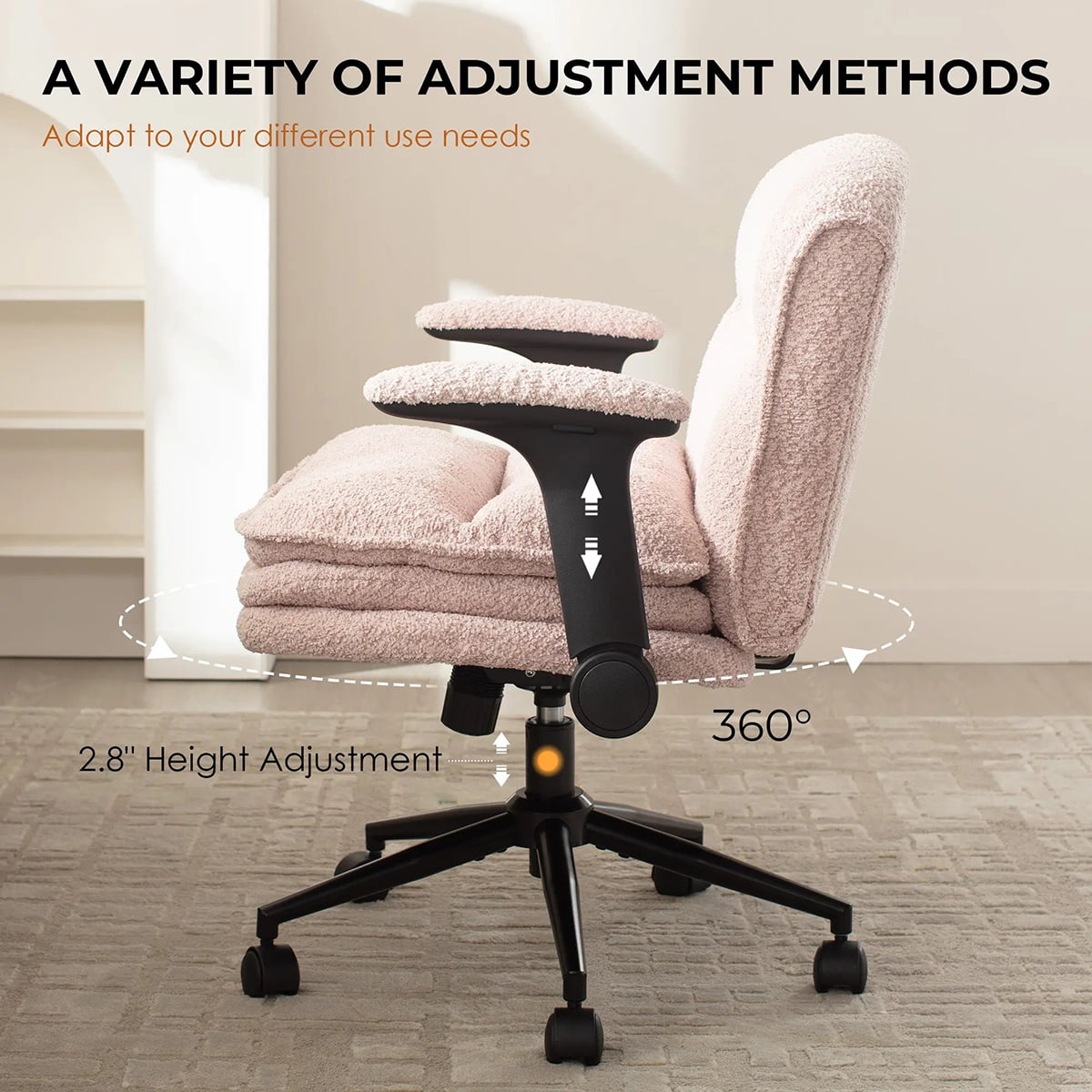 ② Cathaoirleach Deasc Traschosach eirgeanamaíochta le lámhainní inchoigeartaithe, Sclóine 360° & cúisíní Tiubh - Cathaoirleach Oifig Baile Bouclé